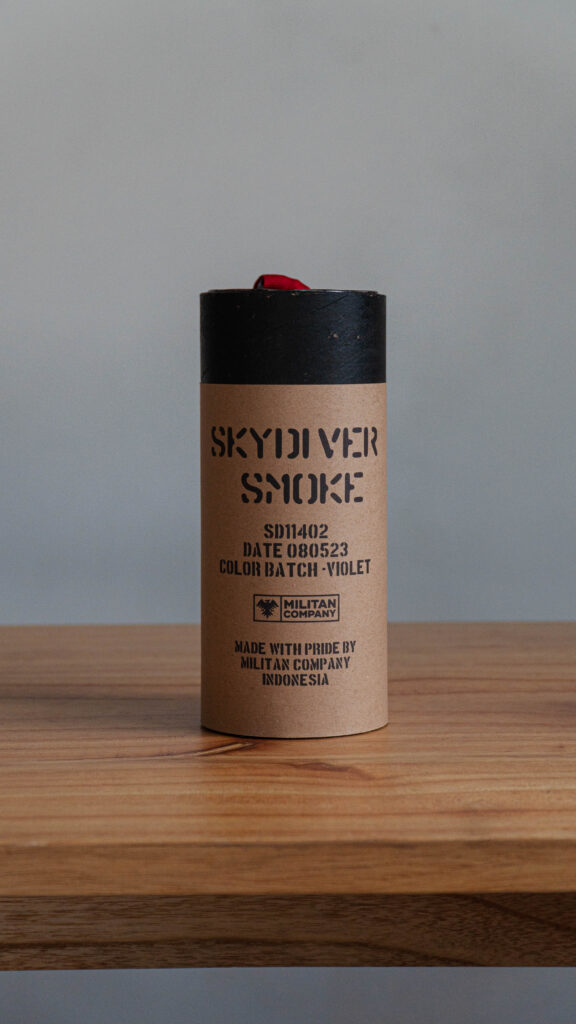 Sky diver smoke adalah produk smoke bomb khusus yang kami buat untuk kepentingan aerobatic skydive. Produk ini dibuat khusus untuk tim aerobatic TNI (kopasus) pada tahun 2021. Produk ini menjadi suatu kebanggaan bagi kami karena bisa bekerja sama dengan TNI khususnya tim aerobatic skydive milik kopasus.